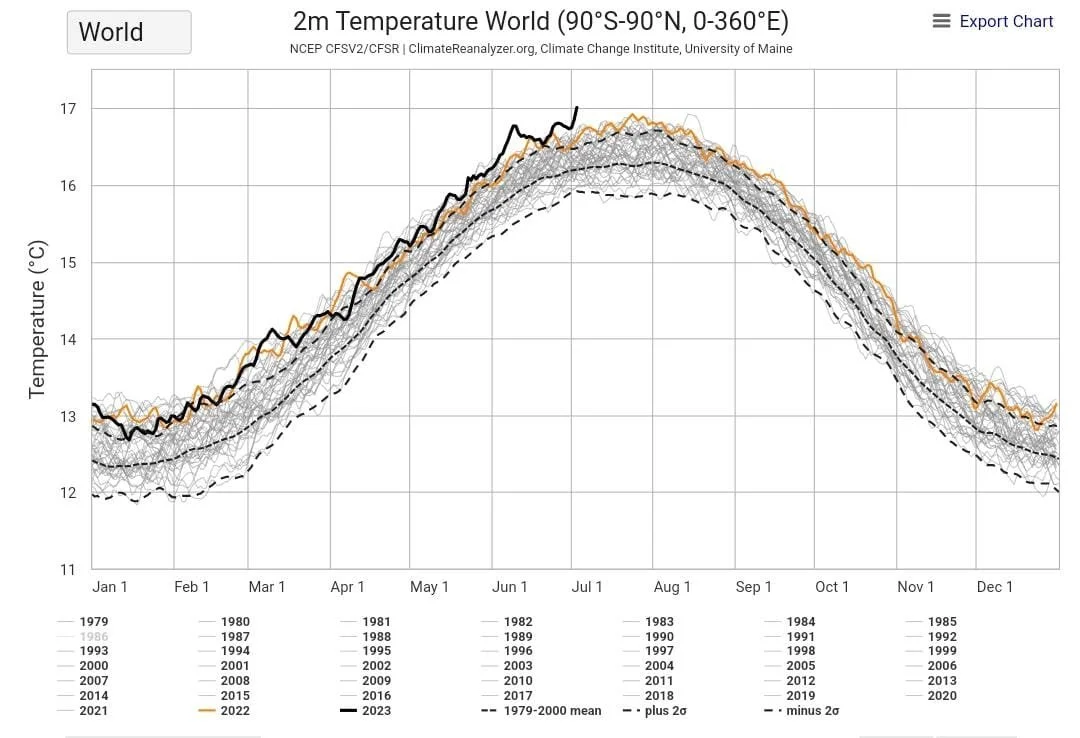 No dia 3 de Julho de 2023 a temperatura média do planeta atingiu pela primeira vez os 17,01 graus Celsius.